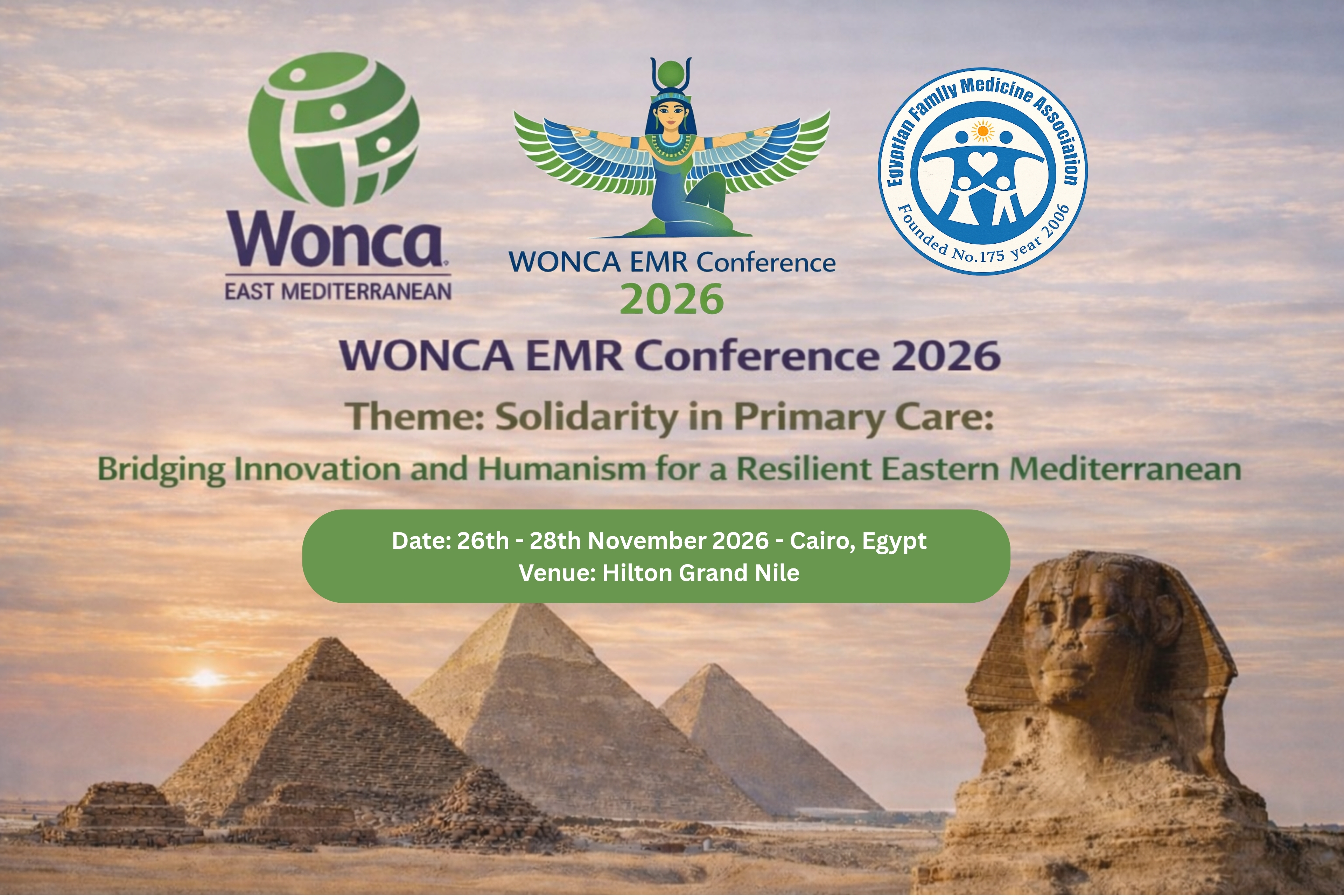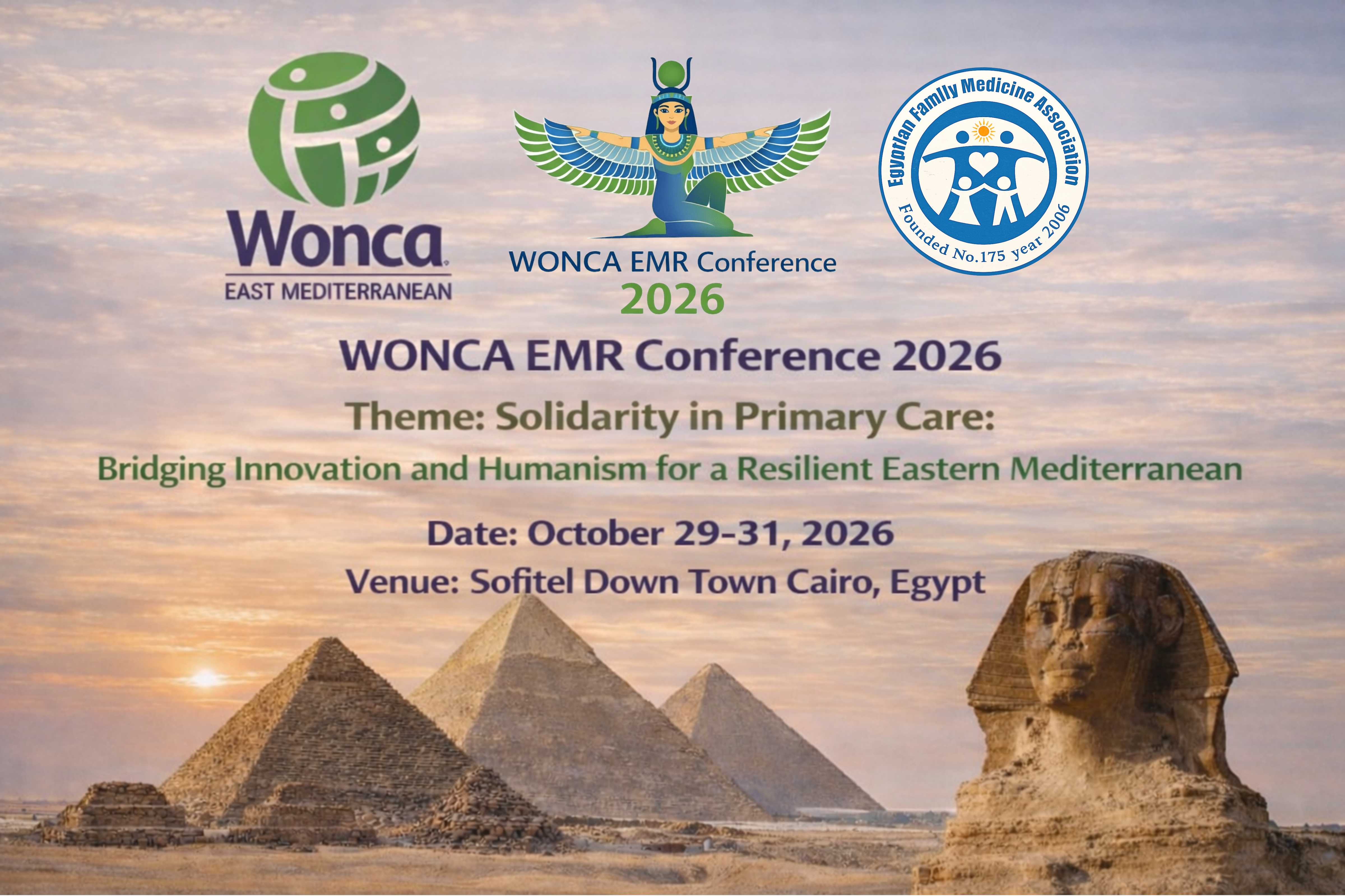 WONCA EMR CONFERENCE to be held from October 29-31, 2026, in Cairo, Egypt. The proposed theme is: “Solidarity in Primary Care: Bridging Innovation and Humanism for a Resilient Eastern Mediterranean. “